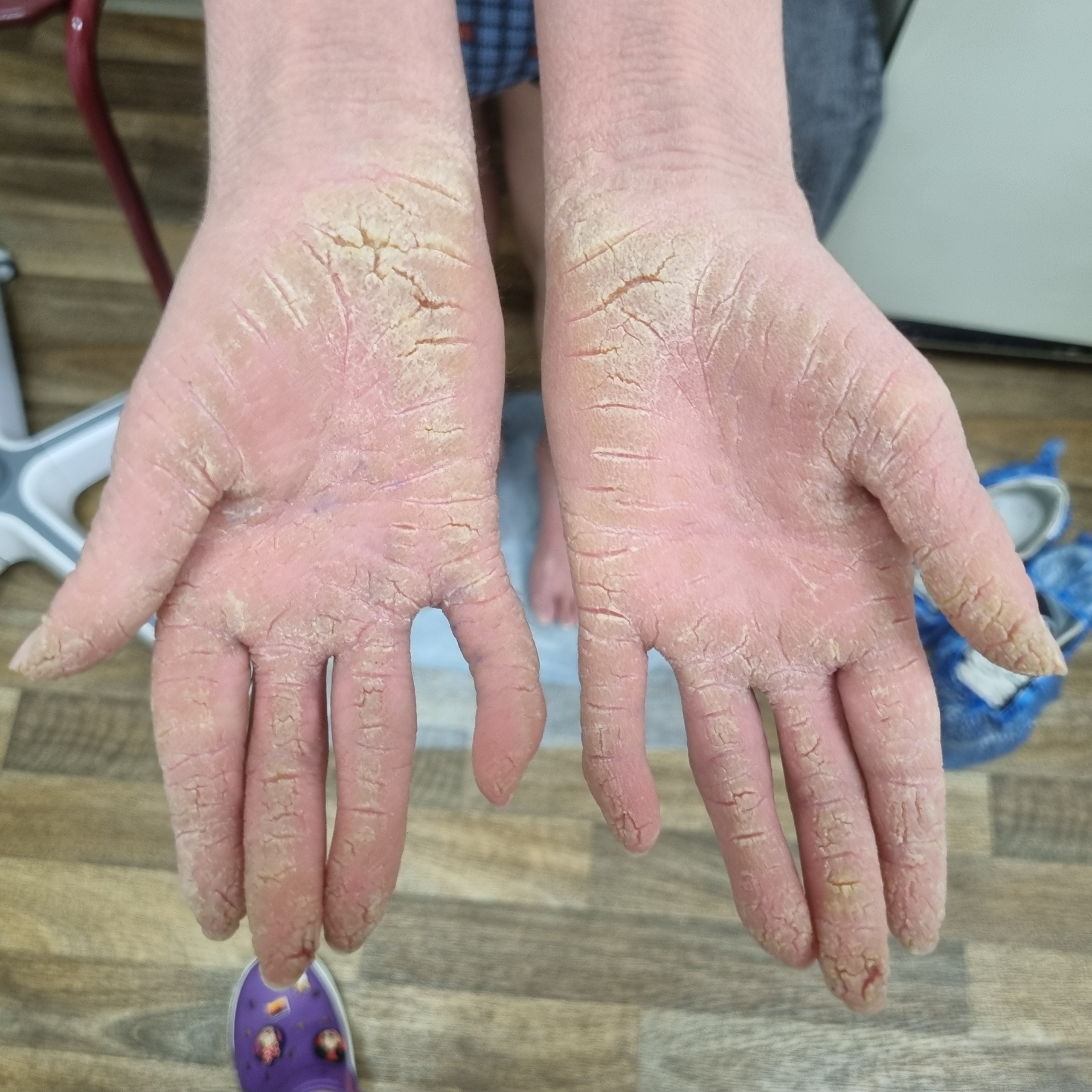 🔹 чаще начинается с голеней и предплечий.